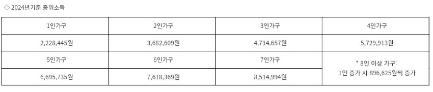 Thu nhập trung bình chuẩn cho hộ gia đình bốn người vào năm 2024 là 6,695,735 won.